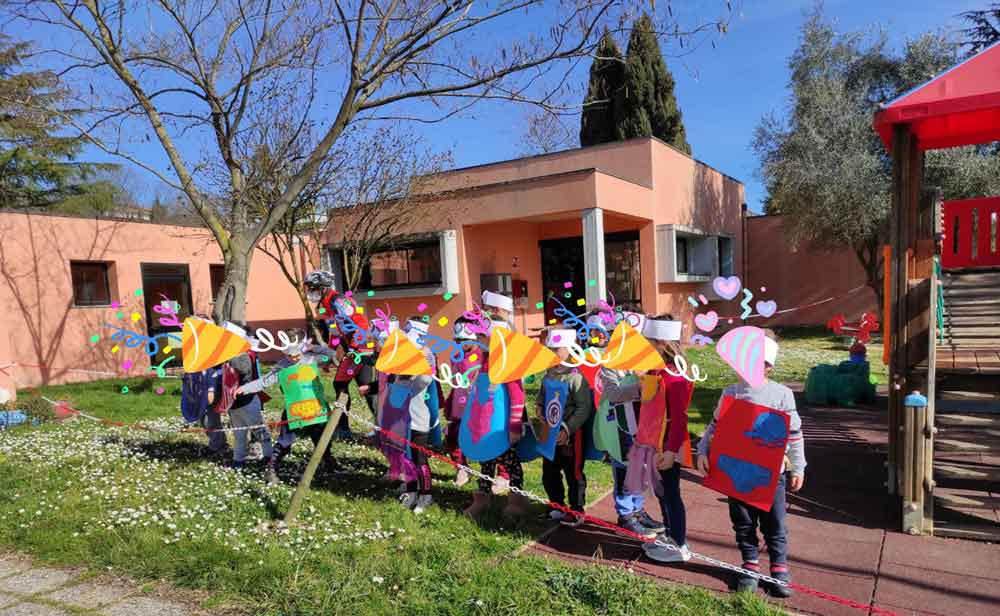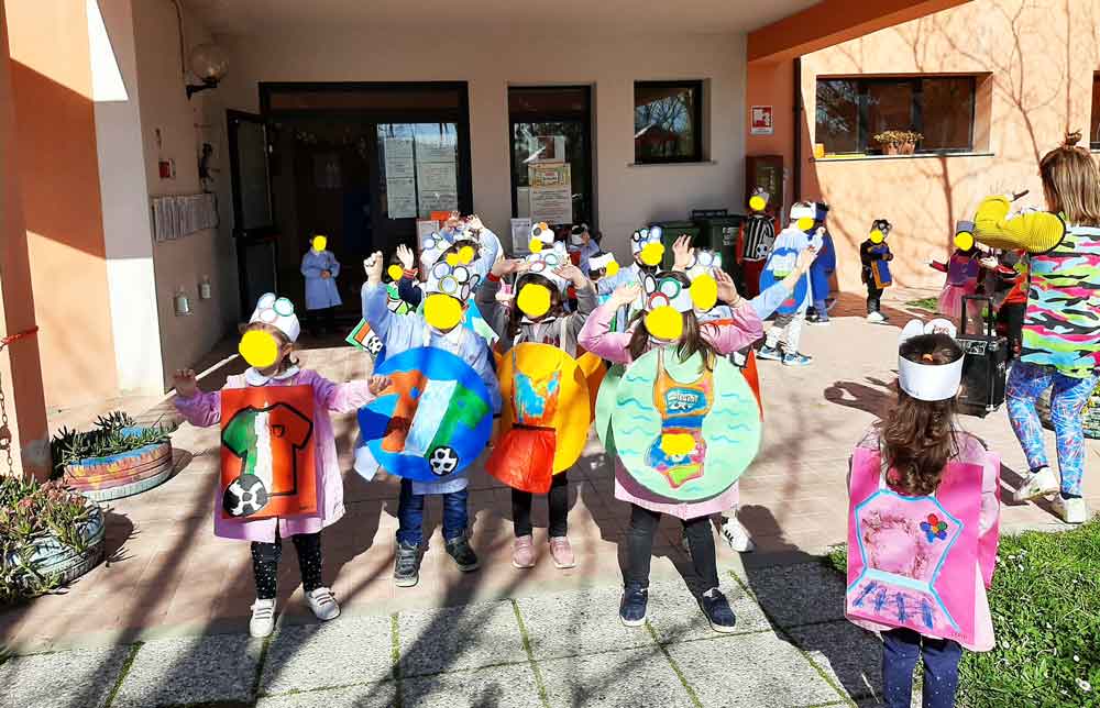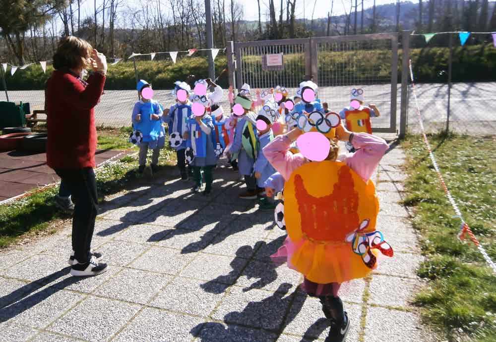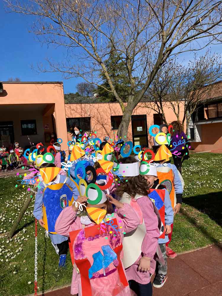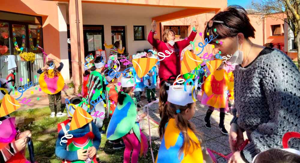Giovedì grasso (24 febbraio) la nostra scuola dell’infanzia si è “vestita a festa” con addobbi, maschere e con una “sfilata danzante” in giardino.