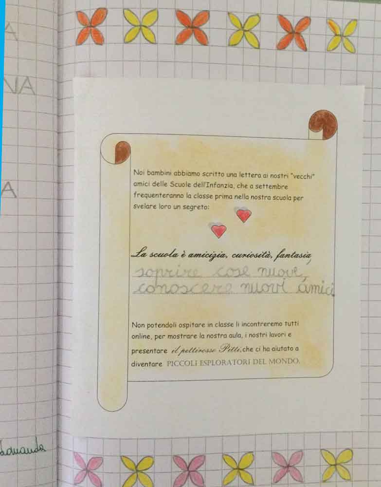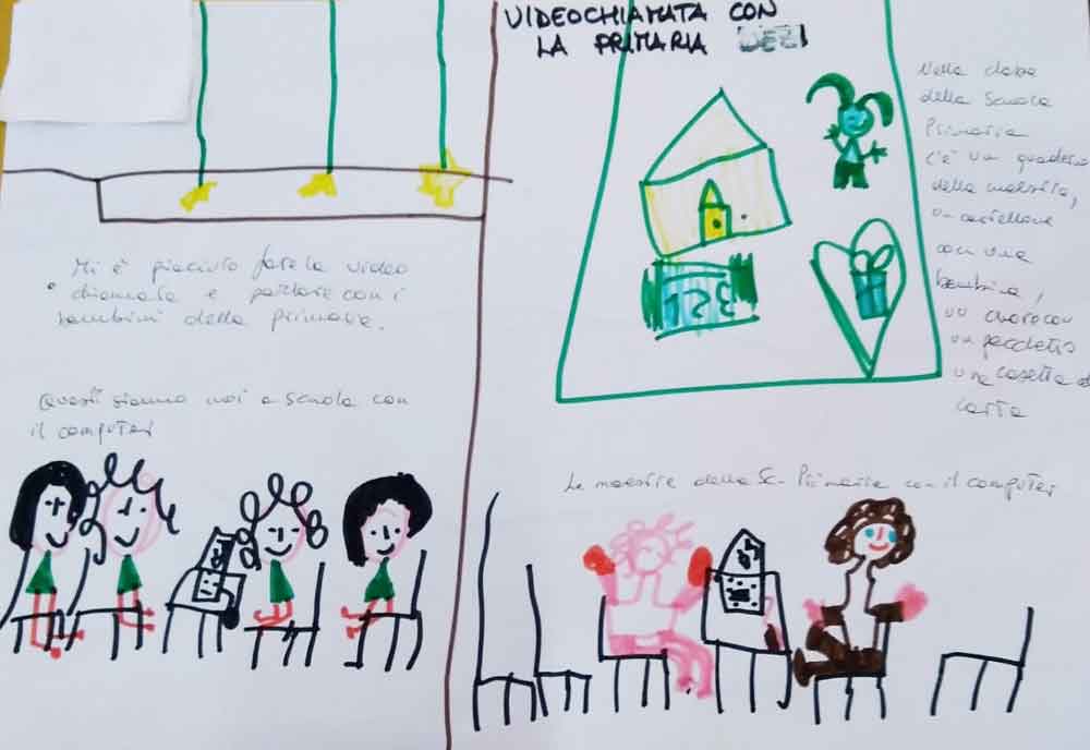 Si è cercato pertanto, seppur a distanza, di aiutare gli alunni/e ad affrontare il delicato momento di passaggio, mostrando loro l’ambiente scolastico e gli amici tramite delle videochiamate che sono state effettuate con tutte le classi prime delle scuole primarie. In tali occasioni essi hanno posto domande e si sono confrontati con i loro amici. Inoltre, a tutti gli alunni/e dell’ultimo anno delle scuole dell’infanzia è stato proposto la storia stimolo “LA ZATTERA” di Lucia Salemi (clicca qui per il VIDEO) sfruttando la metafora del viaggio verso una nuova casa ovvero la scuola primaria. Da qui le future insegnanti della Scuola Primaria potranno ripartire per impostare le attività per l’inizio del prossimo anno scolastico.