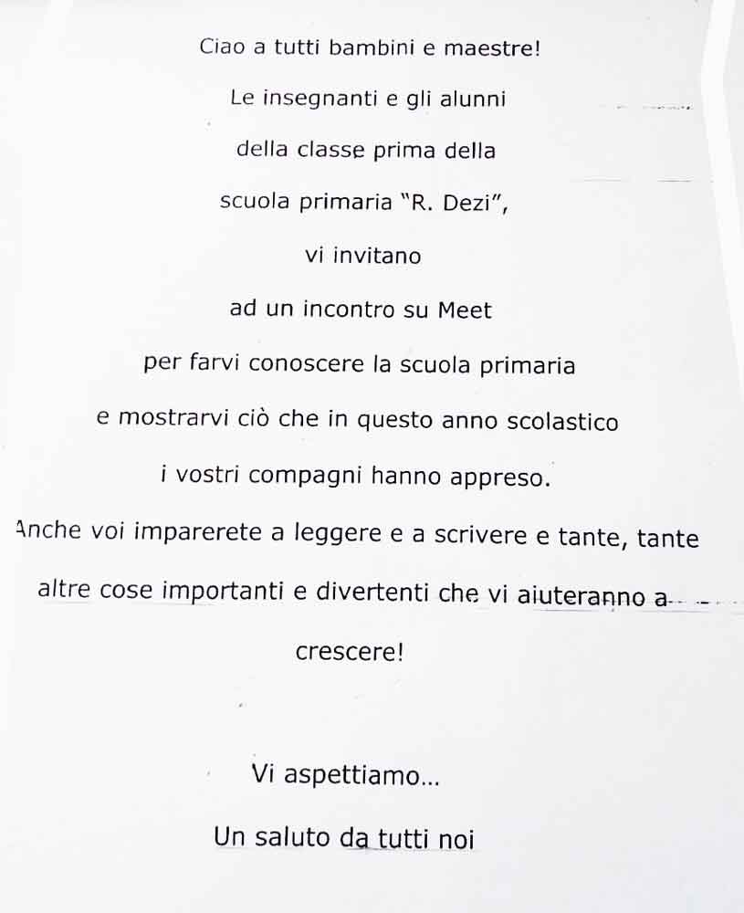 - incontro in presenza con gli insegnanti delle future classi prime…, per conoscere e farsi conoscere dagli alunni/e di 5 anni e quelli di quinta.