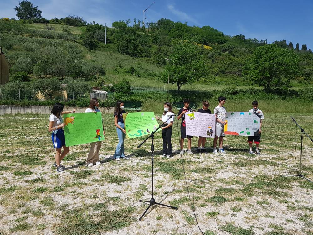 Secondaria G. Leopardi – Il giorno 24 maggio, nell’ambito della Flessibilità didattica e della progettualità del PTOF, le classi della Scuola Secondaria di primo grado di Saltara 2B, 2D, 3A, 3B, 3C e 3D si sono recate presso il campo sportivo adiacente alla scuola per la presentazione di alcune attività riguardanti la tematica della sostenibilità, con particolare attenzione alla situazione ambientale.