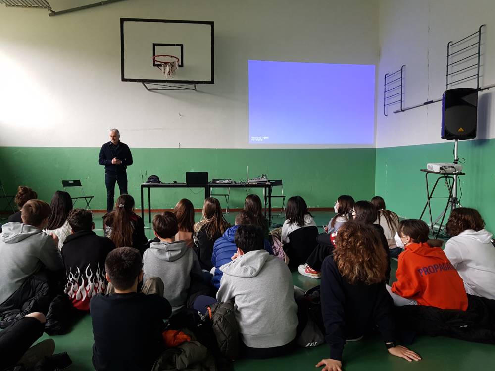Secondaria G. Leopardi – G. Marconi Il 18 marzo presso la palestra del plesso “G. Leopardi” di Saltara, nell’ambito del progetto “Prevenzione e contrasto al bullismo e cyberbullismo”, le classi terze della Scuola Secondaria di I grado di Saltara e Montemaggiore hanno partecipato all’incontro sulla prevenzione di alcuni rischi giovanili legati alla rete, in particolare il cyberbullismo, tenuto dal Dottor Marco Lanzi della Polizia Scientifica di Pesaro.