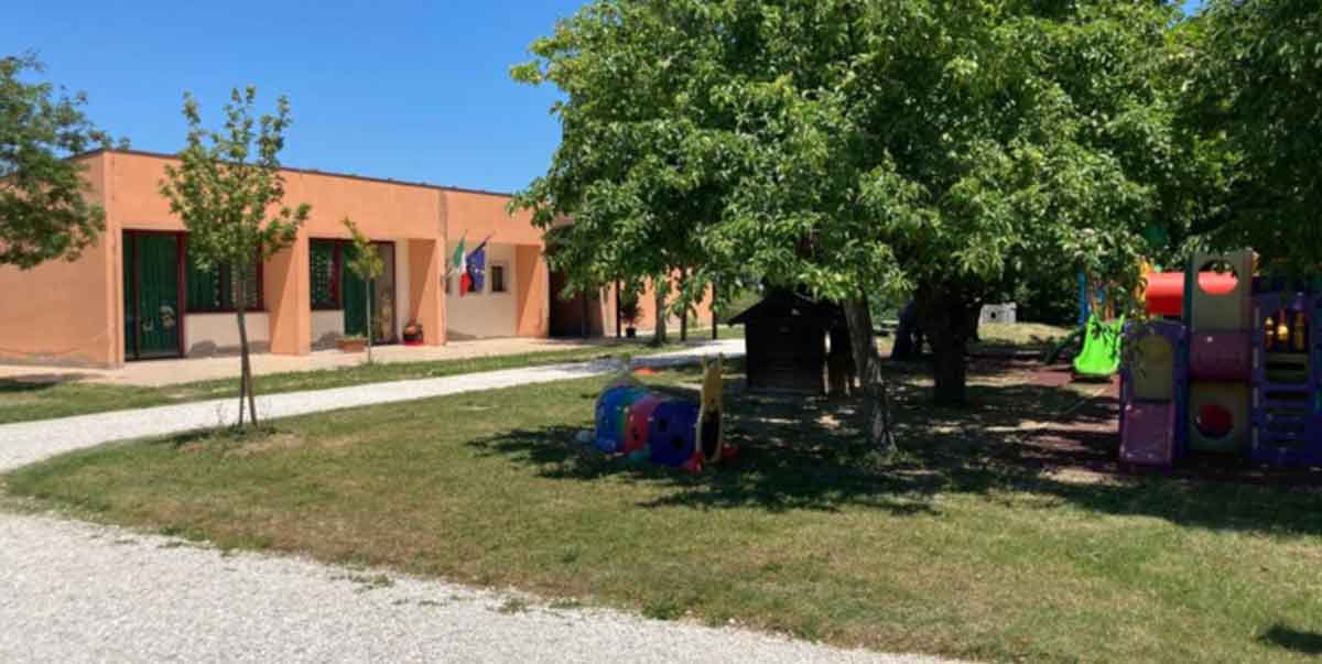 Il plesso offre ampi giardini, un salone all’ingresso utilizzato per l’attività motoria, sezioni accoglienti e uno spazio mensa.