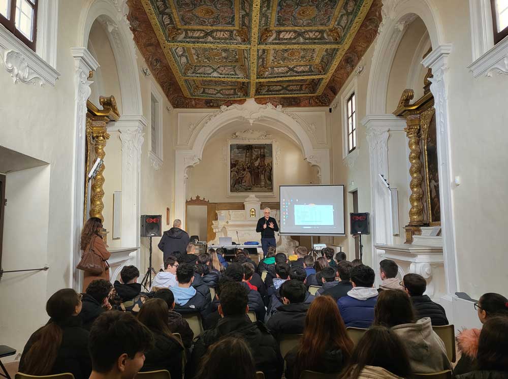 Il giorno 22 febbraio 2024 presso l’ex Chiesa del Gonfalone di Saltara gli alunni delle classi terze della Scuola Secondaria di I grado del nostro Istituto hanno incontrato il Dottor Marco Lanzi, già Commissario della Polizia Scientifica di Pesaro, che da diversi anni collabora con la nostra scuola per parlare ai ragazzi di tematiche relative in particolare ai pericoli della rete. L’incontro si è svolto nell’ambito del progetto di prevenzione e contrasto al bullismo e cyberbullismo con lo scopo di rendere gli alunni consapevoli e responsabili cittadini digitali. Il dottor Lanzi e il professor Gianmarco Cecconi, docente di lettere della Scuola Secondaria di I grado di Pesaro, incontreranno i genitori degli alunni il giorno 6 marzo presso la Sala della Comunità di Calcinelli per sensibilizzarli su tali tematiche.