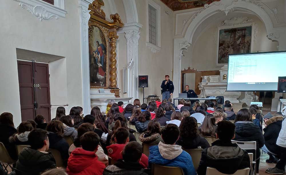 l giorno 14 dicembre 2023 presso l’ex Chiesa del Gonfalone di Saltara gli alunni delle classi seconde della Scuola Secondaria di I grado del nostro Istituto hanno incontrato le Forze dell’Ordine della Polizia Postale di Pesaro che hanno trattato la tematica dei pericoli della rete, nell’ambito del progetto di prevenzione e contrasto al bullismo e cyberbullismo. L’incontro ha toccato vari argomenti come la legislazione vigente in materia e l’uso corretto di Internet e dei social con consigli utili su come comportarsi se si è vittima o se si è assistito a delle prepotenze in presenza oppure on line. Lo scopo dell’incontro è stato quello di rendere maggiormente consapevoli e responsabili gli studenti su questo fenomeno che, purtroppo, si presenta sempre più urgente e attuale.