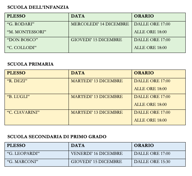 Si riporta il calendario degli open-day per ordine di scuola.