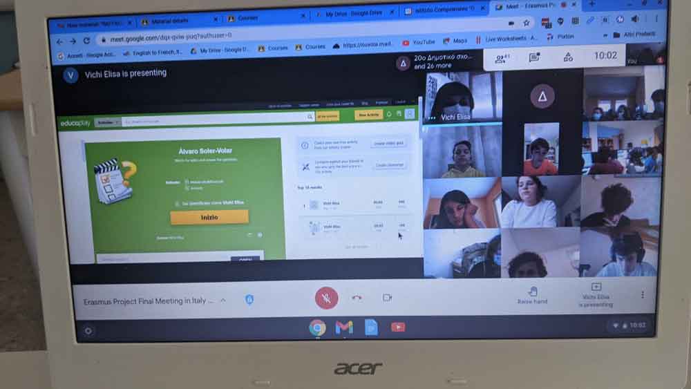 Le scuole partners coinvolte (Bulgaria, Creta, Lettonia) hanno partecipato alla mobilità virtuale attraverso la piattaforma Meet, accolti dagli studenti delle classi seconde (A-B-C-D), affiancati dai docenti: Carnaroli, Cesarini, Coppola, Del Moro, Vichi e dalla referente del progetto Mearelli, con la collaborazione delle docenti Omicioli e Vitali. Sono state proposte attività didattiche interattive veicolate in lingua inglese, utilizzando la metodologia della Flipped Classroom. Gli studenti hanno avuto un ruolo attivo nella preparazione di video, giochi online, manufatti, e nella presentazione in lingua dei contenuti di diversi ambiti disciplinari:
