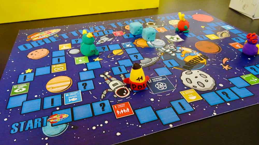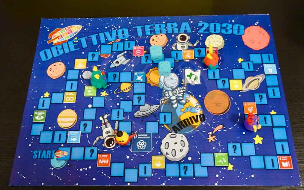 La 3D ha realizzato il gioco in scatola OBIETTIVO: TERRA 2030 immaginando che i giocatori siano degli astronauti in partenza con direzione la Terra del futuro, che solo noi possiamo decidere se rendere migliore.